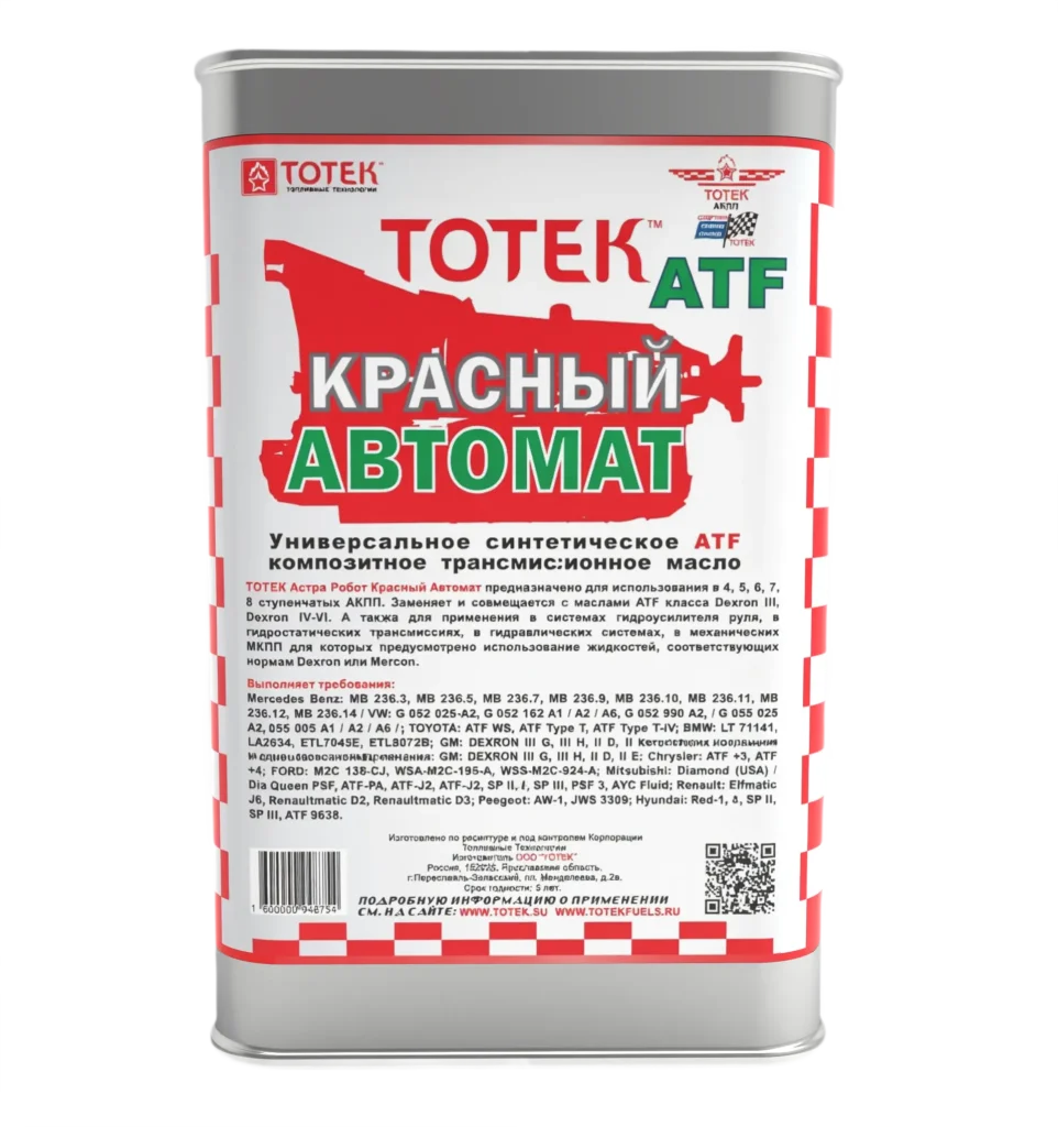 Универсальное синтетическое композитное трансмиссионное масло ТОТЕК Астра Робот Красный Автомат предназначено для использования в 4, 5, 6, 7, 8 ступенчатых АКПП. Полноценно заменяет масла для АКПП класса Dexron III, Dexron IV-VI там где они рекомендованы.