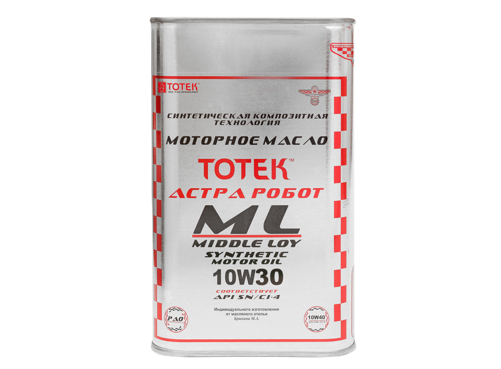 Синтетическое композитное моторное масло ТОТЕК Астра Робот – ML (где ML означает Midl Low – средний уровень). Соответствует классу вязкости SAE 10w30, что гарантирует достаточные эксплуатационные показатели при высоких нагрузках, обеспечивая защиту от износа двигателя на протяжении сервисного периода предписанного производителем автомобиля .