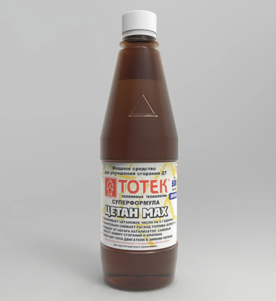 Препарат для тюнинга дизельного топлива получила коммерческое название :ТОТЕК Цетан МАХ (500)суперформула. В неброском флаконе, но высоко функциональной удобной для употребления формы, заключено вещество, поистине сгусток интеллектуального труда учёных химиков, нефтехимиков, ракетчиков и мотористов. Которое позволяет снизить расход топлива до 7,8%, повысить мощность и крутящий момент двигателя, удалить все нагары в камере сгорания, на форсунках, и не допускать их образования на протяжении всего периода использования присадки в топливе, позволяет продлить срок службы двигателя минимум в 1,3 раза, топливной аппаратуры до двукратного. Улучшить экологию, снизить вредные  выбросы в атмосферу до 60% и более. Всё это стало возможным благодаря применению нанотехнологий управления горением — благодаря этой технологии, в двигателе сгорают почти все углеводороды, синхронизируется процесс горения с углом поворота коленчатого вала, усиливается импульс давления поршневых газов, что значительно оптимизирует работу дизельного двигателя даже при использовании некачественного дизельного топлива.
